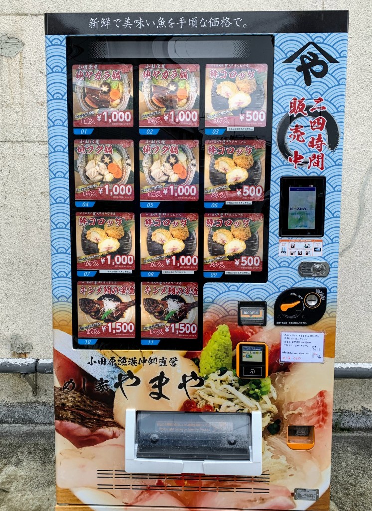 右の写真は、魚料理の自動販売機。初めて見たので、驚いて思わず写真を1枚。