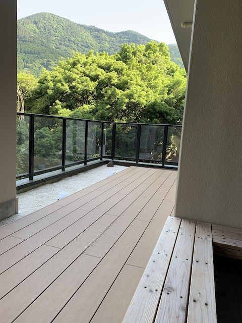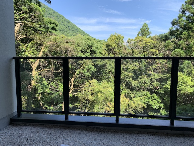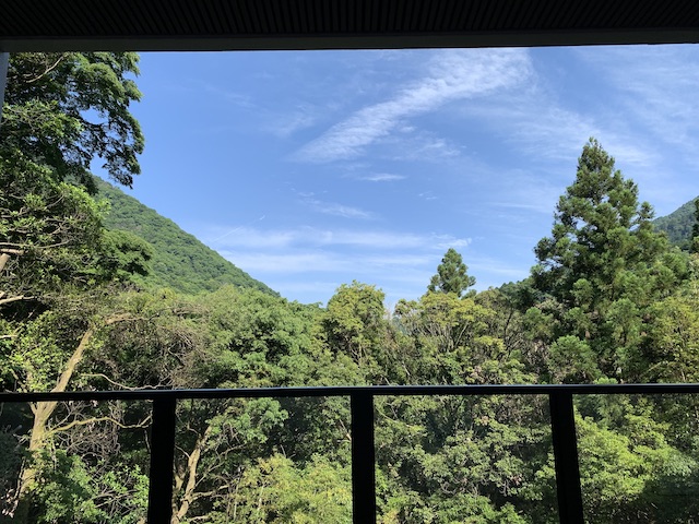 まず玄関から入り、レセプションのあるロビーのテラスには、足湯がある。ちゃんとタオルも潤沢に用意されているので、足が濡れても問題なし。ここで、さすがにパソコンで作業というわけにはいかないが、ゆっくり考えに耽ることはできる。メモを持って、ときどき思いついたことを書き留めておけば良い。