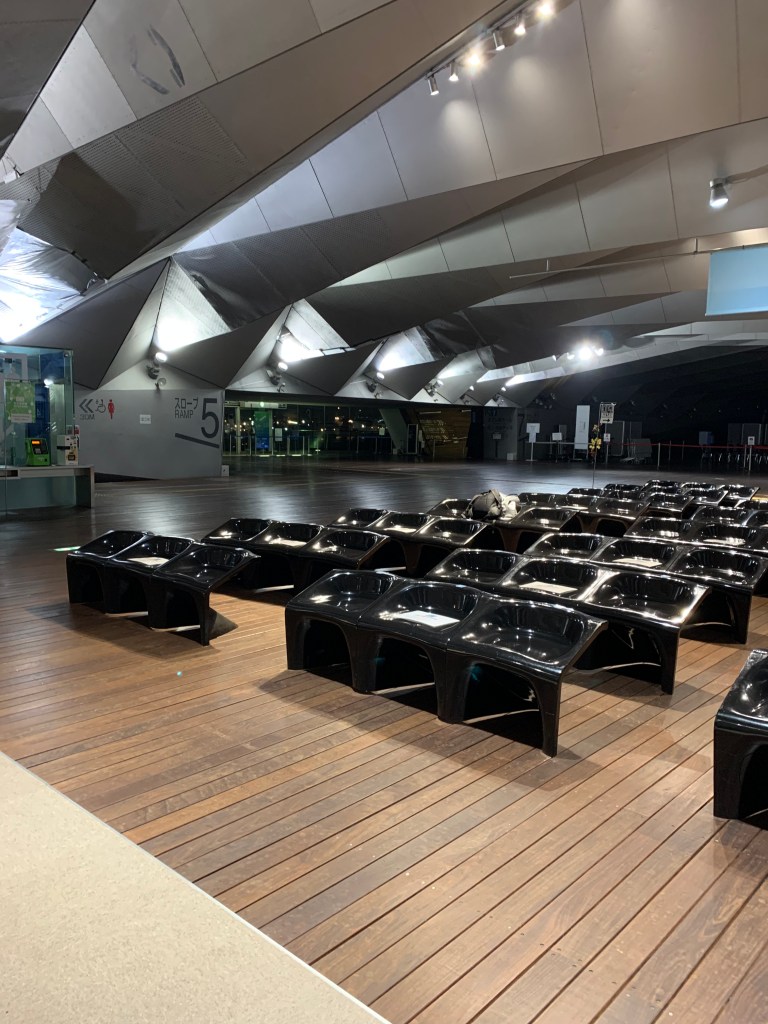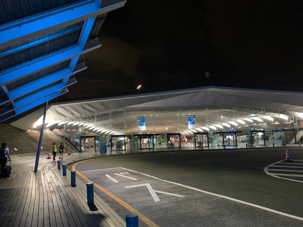 出発カウンターのある横浜港の建物も近代的で美しい。夜11時近いので、人は少なく建物内は乗船客のみなので、いっそう少ない。窓口で予約していた乗船券を受け取る。