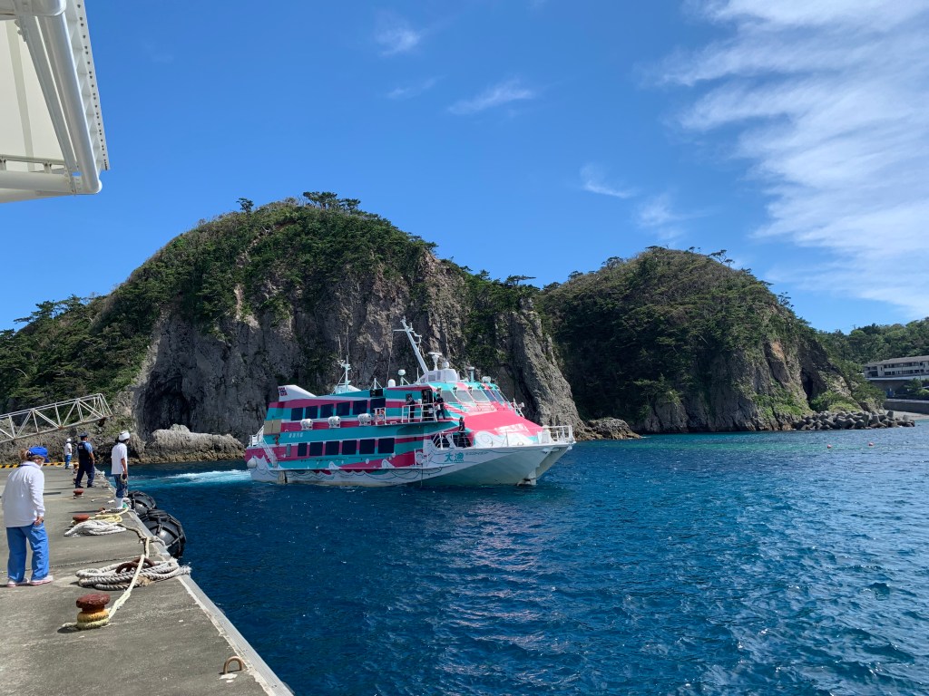 式根島から伊豆大島に行ってみました。ジェット船で式根島から1時間弱、あっという間に到着。今回の目的は、日本で唯一の砂漠という名称の付いている裏砂漠と、大島温泉ホテルの三原山を臨む温泉に入ること。
