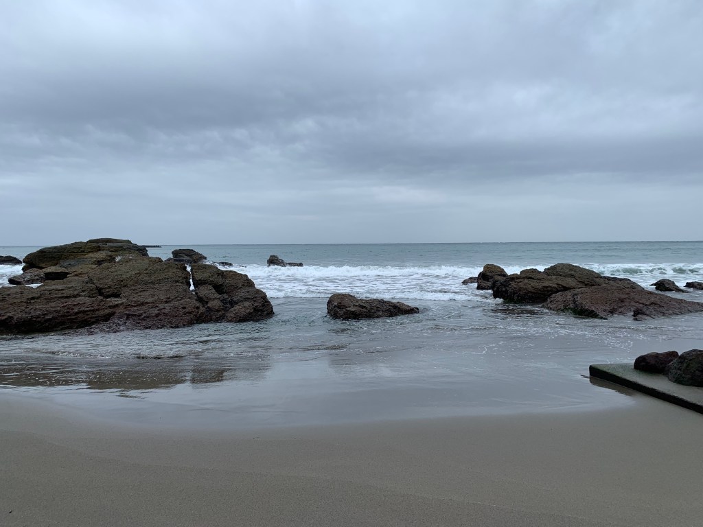 今日は、生憎の雨だが、しとしと降る感じなので、短い距離なら傘無しでも大丈夫だ。駅に着くと、早速海が眺められる。駅から、今井浜海岸までは歩いて5分ほどの距離で、まず海岸ベリに立ってみる。午前中の海岸は、誰もおらず波の音だけが聞こえる。少し海岸沿いの道路を伊東方面に向かって歩く。港が出てくる。寂れた感じは否めない。夏の海水浴シーズンは結構な人出になると思うが、季節外れのビーチは裏寂しい。