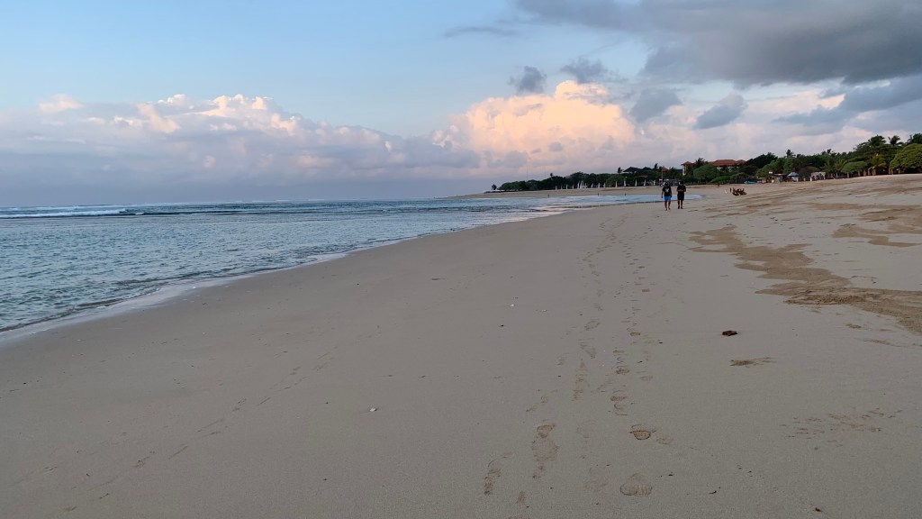 ビーチは清掃されているのでゴミは、ゴミや漂流物もなく美しい。会議前の早朝しか行くことができなかったのは残念だ。