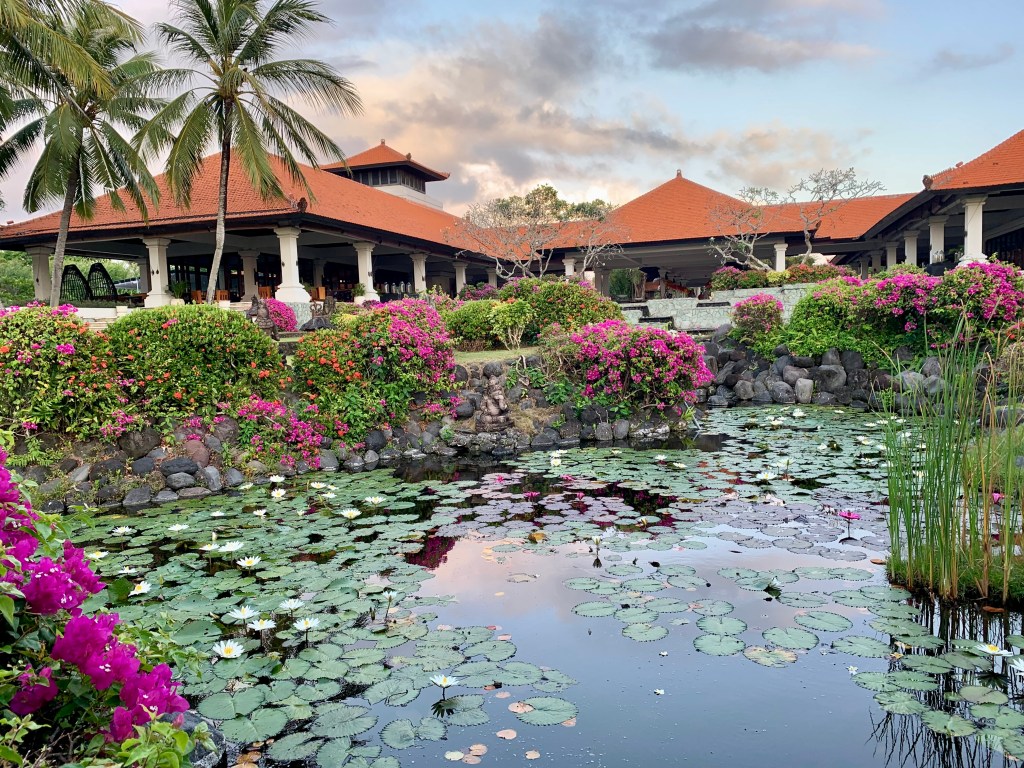 今回の特筆すべきはホテルでした。バリ・ヌサドゥア・グランドハイアットホテルは、庭園となった広い敷地にいくつかの棟に別れて部屋が存在しており、お店やレストランが点在していて、もちろん広いプライベートビーチが目の前にある。
