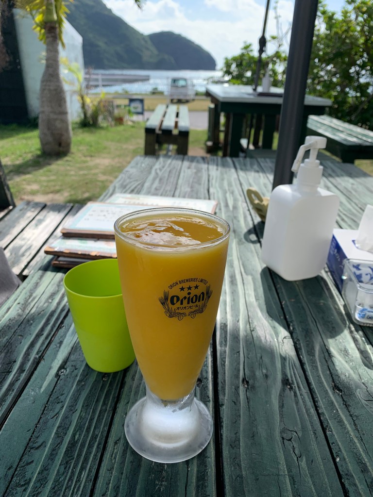 そこから取って返し、民宿へと自転車を走らせる。清々しい風を浴びながら、青い海を眺めながらのサイクリングが気持ちいい。民宿の奥さんからは、またおいで、と言われ、確かに再訪の価値ありだと思った。自転車を返却して、昼食へ。2、3件のレストランか食堂はあると思ったが、民宿の奥さん曰く、今のシーズンは1軒しか空いてないだろう、とのことで、昨日行った「はぁなカフェ」に行くことにした。今日は、客がだれもいなかったので、外のテラスで、カクテルを飲みながらパスタを食す。冬に南国での食事という贅沢。気分がいい。