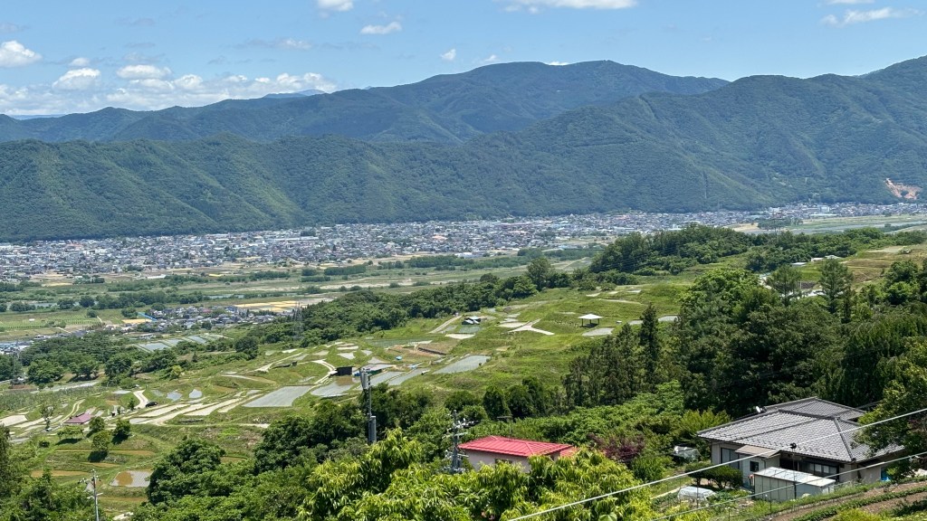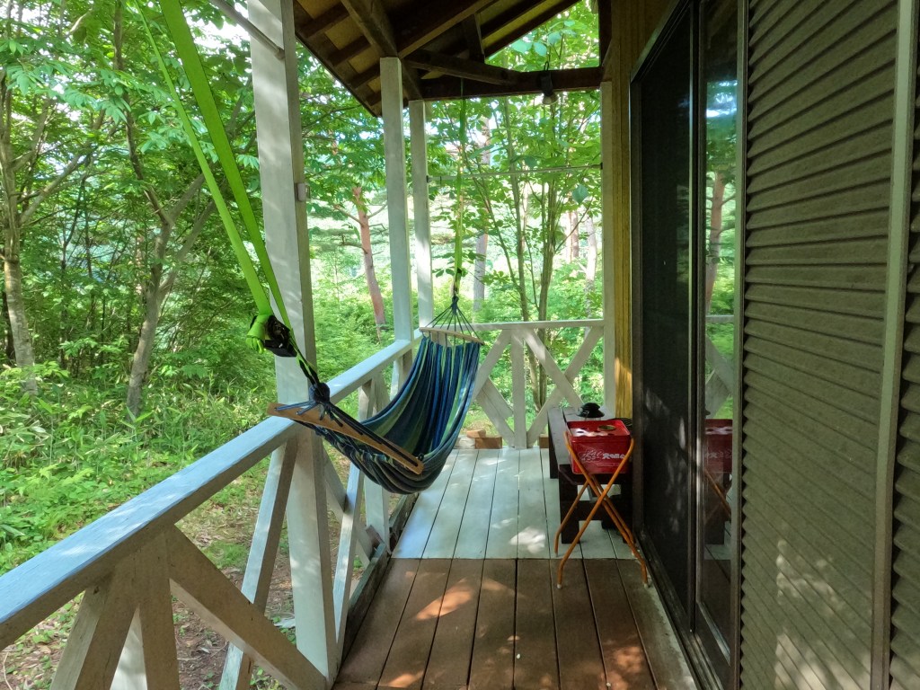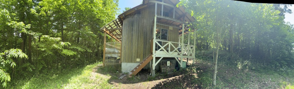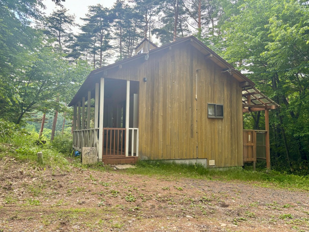 姨捨駅から4キロほど山に向かって登ったところに今回の宿がある。姨捨駅にはタクシーはおらず、また公共交通のバスもないので、駅からは1時間以上のぼりを歩くことになる。「山と池」という名称の貸別荘となる、別荘地の一角にあり、まわりに家がない離れの宿だ。しかし、水道も電気もあり、キッチン道具も揃っているので食材を持っていけば不自由なく過ごせる。